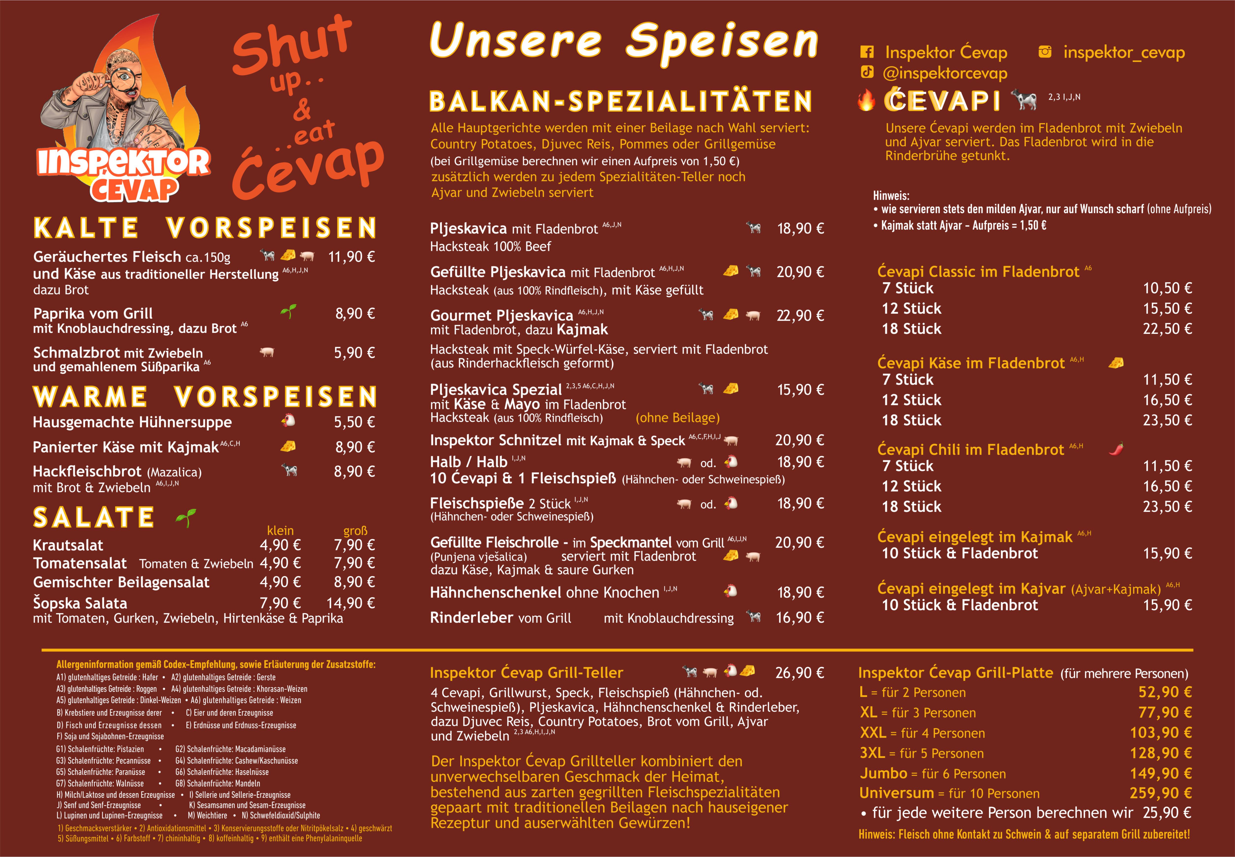 Willkommen bei Inspektor Ćevap! Schön, dass du uns gefunden hast! Wir sind dein gemütliches, rustikales Balkan-Restaurant mit ganz viel Herz, Holz und Grill auf dem Teller.